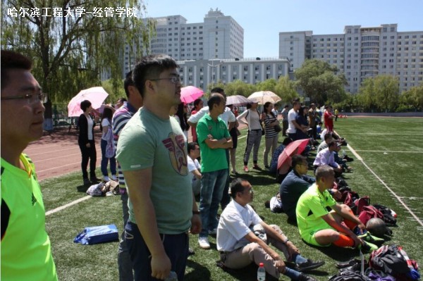 在本场比赛中,学院派出了包含10多位教师的啦啦队阵容,“9系加油,经管必胜”的口号响彻球场,给场上队员带来了强大的精神动力。场下还有来自机关和部分兄弟院系的联队队员莅临指导,帮助球队及时调整战术。