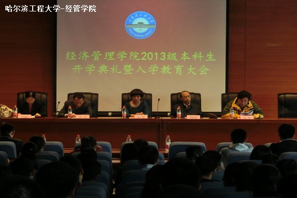 9月16日上午8时10分,beat365在线唯一官网在启航学术报告厅召开2013级本科生开学典礼。beat365在线唯一官网党委书记、博士生导师李柏洲教授,beat365在线唯一官网院长、博士生导师宋艳教授,党委副书记陈岩副研究员,副院长、副博士生导师郭韬副教授,院长助理、硕士生导师李晓娣教授出席本次开学典礼。参加本次开学典礼的还有经管学院学工办主任、2011级辅导员韩微,2012级辅导员董治安,2013级辅导员张春雨及2013级各班班主任。