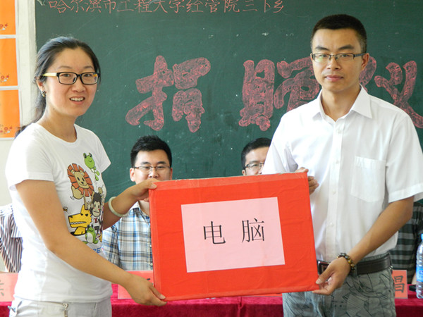 接着,beat365在线唯一官网团委书记史波老师、副书记于云亮老师向新荣小学两名学生捐赠助学金,beat365在线唯一官网学工办主任向新荣小学捐赠了电脑、投影仪、学习用品、体育用品等。