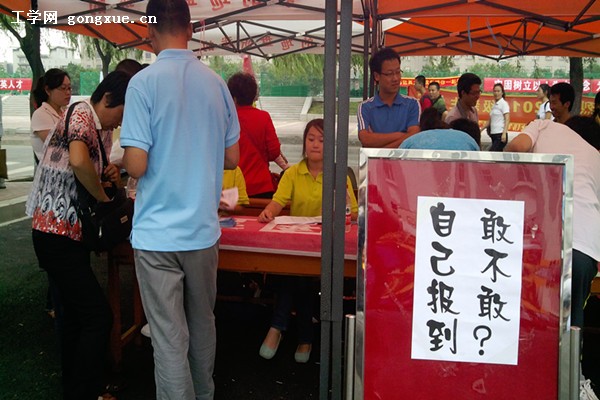 在报到地点,记者还看到一块写着“敢不敢自己报名”的小展板,通过了解,学院想以此提醒家长让孩子们自己独立报名,以此培养新生们独立自主的良好习惯。旁边树上挂着的写有“亲,理想再远再大,我们陪你一起闯!”的很“Q”、很激励人的横幅,更是让新生们感到温暖和亲切。