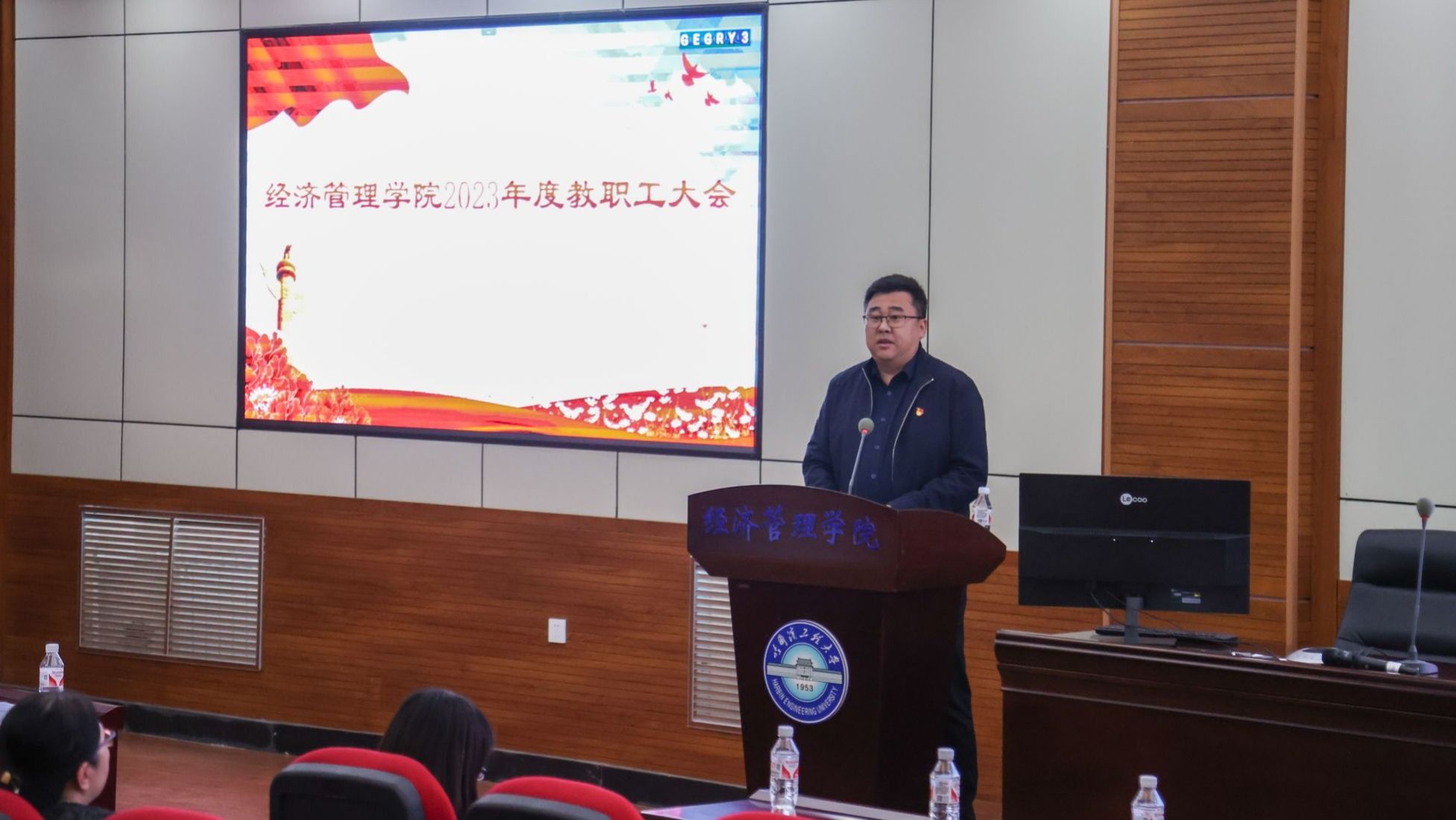 院长陈恒同志代表学院做《2023年度工作报告》和《2023年度财务工作报告》,工作报告从牢记嘱托、党的领导全面加强,强化顶层设计、学科发展建设取得新提升,集聚人才资源、师资队伍建设取得新进步,突出拔尖创新、人才培养能力达到新水平,聚焦国家战略、科技创新工作取得新突破,创新培养模式、专业学位教育呈现新生态,聚焦师生关切、办学支撑条件得到新改善等方面全面总结了2023年度学院工作整体情况;传达了学校春季学期工作会议精神,对综合改革的背景、基本要求和学校推进综合改革的思路与任务进行了重点介绍,强调综合改革具有非凡意义,要求必须坚持系统观念、守正创新,从体系上认识、从全局上把握五个行动方案、全球化发展战略行动计划和管理科学与工程学科三年行动方案,不断明晰行业特色研究型大学beat365在线唯一官网的改革发展路径,着力推动综合改革落实落地;从7个方面部署学院2024年度重点工作;财务工作报告对学院2023年度校拨经费和自筹经费的收支和使用情况进行详细说明。副院长王君同志向大会做《2023年度工会工作报告》。
