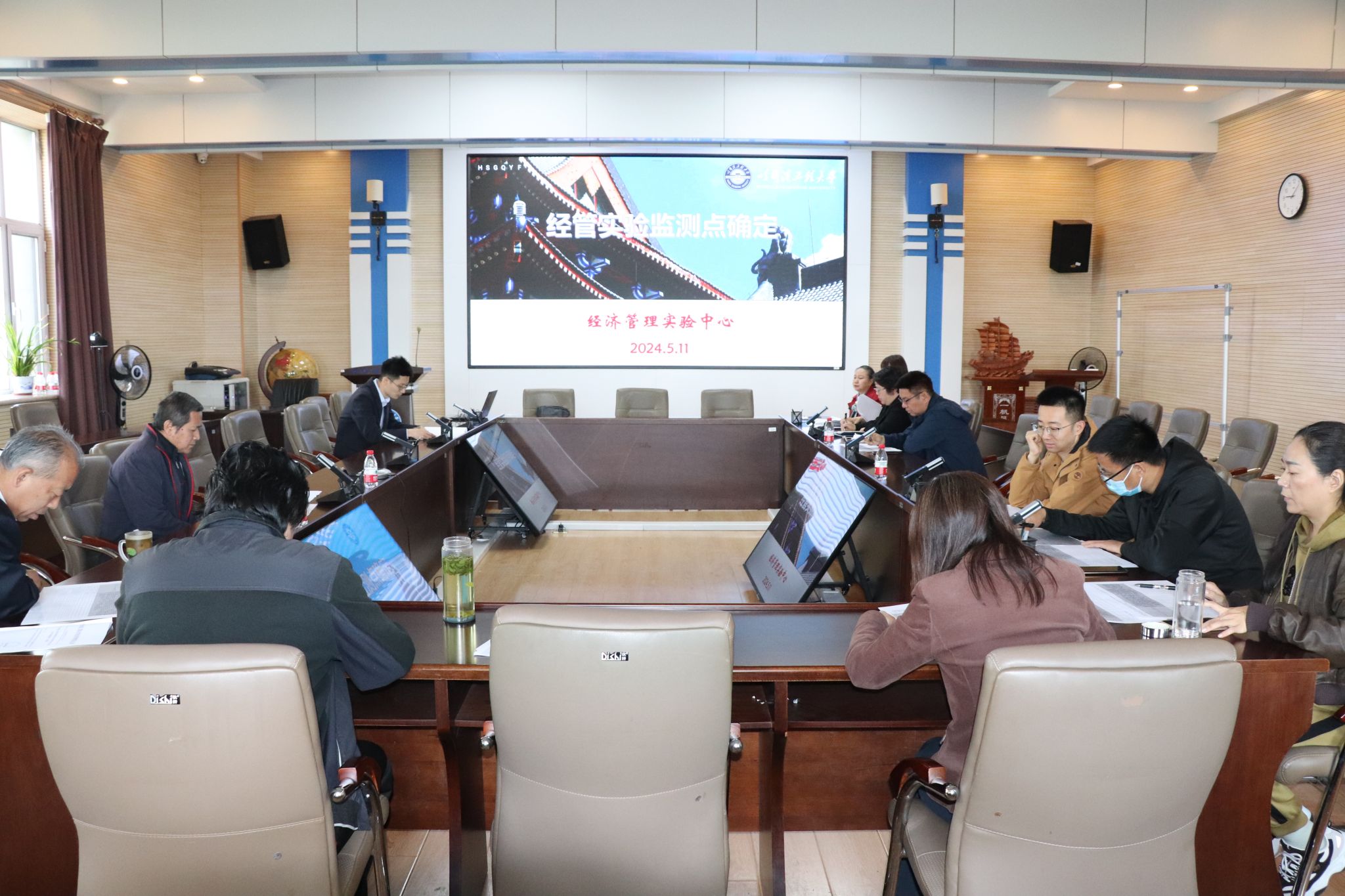 2024年5月11日上午,在312会议室召开经管实验监测点确定会,旨在提升实验教学在本科审核评估工作中的规范性。院长助理刘天森,学院督导组组长范德成教授、李拓晨教授、郭韬教授、杨贵彬教授、李冰副教授参加指导工作,实验教师刘茂长、曹静、贾立江、王克达及实验中心全体工作人员参加会议。会议由刘天森助理主持。