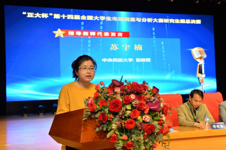 中央民族大学副教授苏宇楠作为教师代表在发言中表示,同学们在比赛中展现出对统计方法的熟练运用、对消费者需求的深刻理解、对市场前景的深刻洞察,展示了新生代研究生的良好风貌。