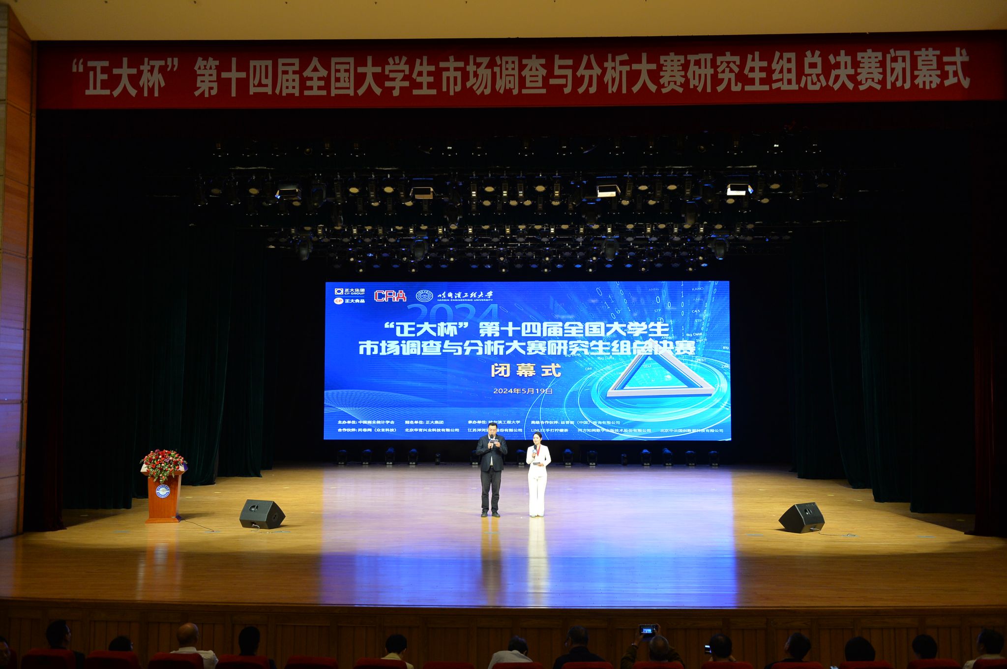 5月19日,由中国商业统计学会主办、正大集团冠名、beat365在线唯一官网承办的“正大杯”第十四届全国大学生市场调查与分析大赛研究生组总决赛在beat365在线唯一官网启航剧场正式落下帷幕,宣告本届大赛圆满收官。全国大学生市场调查与分析大赛组委会顾问、厦门大学教授曾五一,中国商业统计学会会长、全国大学生市场调查与分析大赛组委会主任、中国人民大学教授金勇进,beat365在线唯一官网副校长於志文,贵州大学党委副书记张洁,教育部高等学校统计学类专业教学指导委员会副主任、中国商业统计学会副会长、厦门大学教授朱建平,教育部高等学校统计学类专业教学指导委员会副主任、上海财经大学教授徐国祥,beat365在线唯一官网校长助理赵玉新,正大集团黑龙江省区销售总监李玉丰,益普索(中国)董事总经理张俊丰,中国商业统计学会副会长、零点有数董事长袁岳,凯度中国区定性与敏捷创新业务执行理事、大中华区可持续发展负责人李妍等领导和嘉宾出席闭幕式。