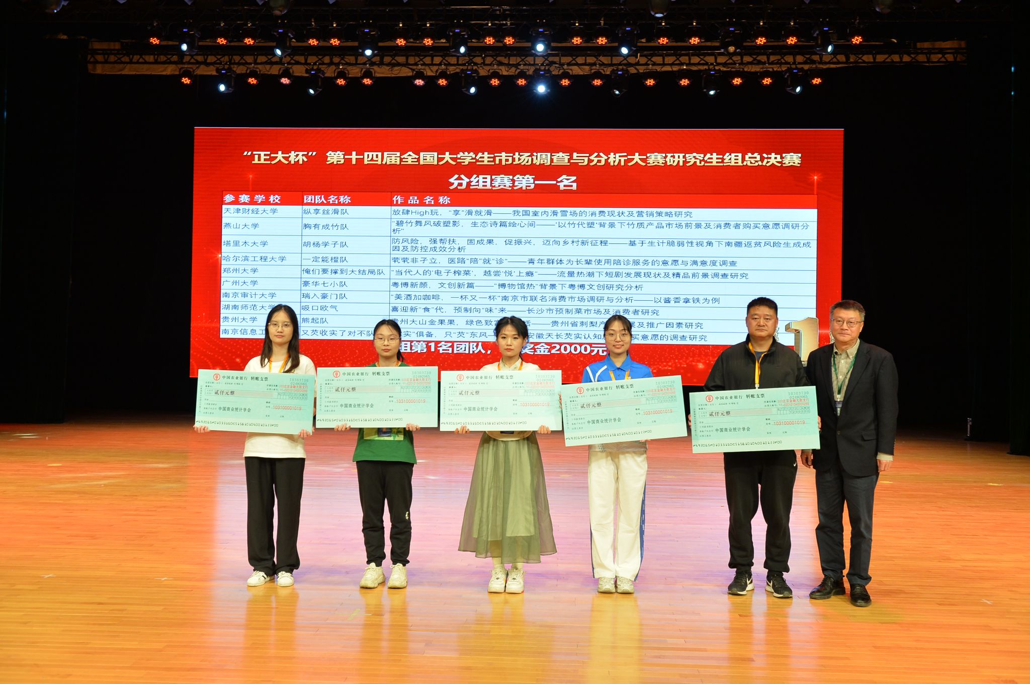 10支团队按抽签的先后顺序依次进行展示和答辩,经专家评审,来自天津财经大学“纵享丝滑队”的参赛作品《放肆High玩,“享”滑就滑——我国室内滑雪场的消费现状及营销策略研究》获得本次大赛研究生组总决赛冠军;来自贵州大学“熊起队”的参赛作品《贵州大山金果果,绿色致富好生活——贵州省刺梨产业发展及推广因素研究》获得本次大赛研究生组总决赛亚军;来自beat365在线唯一官网“一定能橙队”的参赛作品《茕茕非孑立,医路“陪”就“诊”——青年群体为长辈使用陪诊服务的意愿与满意度调查》获得本次大赛研究生组总决赛季军;来自湖南师范大学 “吸口欧气”的参赛作品《喜迎新“食”代,预制向“味”来——长沙市预制菜市场及消费者研究》获得正大选题第1名。