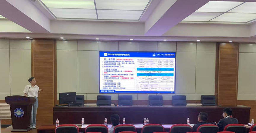 胡玉真从背景形势、参赛情况、工作思路、落实举措和本年度工作计划等5个方面,介绍了学院创新创业竞赛的整体情况。她指出,学院将着力从“政策牵引、制度保障;精准对接、全院覆盖;课赛一体、全程推进;研赛融合、项目互动;工管结合、校区合作”全方位推动2025年创新创业工作再上新台阶。