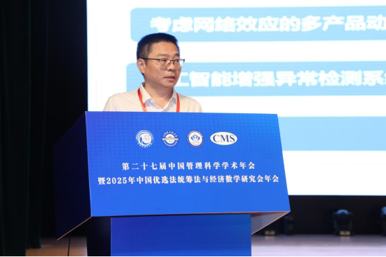 安徽理工大学党委副书记、常务副校长余玉刚教授做题为《考虑现场实验的数智供应链研究》的主题报告,针对电商平台中第三方卖家难以通过品牌建设和差异化运营来提升独特价值的难题,提出了平台产品精准化推荐方法;考虑网络效应下多产品动态最优定价,提出具有良好性能表现的半短视定价策略;为提高筛选保运单效率,提出了人工智能增强异常检测系统,并通过现场试验证实这些方法的合理性。
