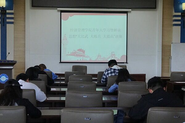 我院根据团省委下发的试题库,组织院系全体团员青年进行学习,形成系统学、全面学、全员学、延伸学的良好学习态势,全面覆盖到我院每个团支部的每位团员青年。本次院系决赛对近期团员学习成果进行测试检验,根据此次测试情况,推选吴申汉、徐世杰、曹芷璇、张新澳、赵徐艺共五名同学组成一支参赛队参加由校团委举办的青年大学习”暨解放思想“大比武 大练兵 大提高”校级决赛。同学们认真对待此次考试,充分认识到“青年大学习”暨解放思想“大比武大练兵 大提高”竞赛活动的重要意义,树立“学习就是工作,工作从学习开始”的理念。