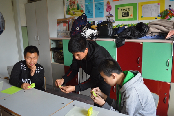 在燎原学校教师的带领下,志愿者们来到教室,为孩子们带来了精心准备的课程。吕晓萌简单介绍了本次活动内容。活动期间,志愿者与孩子们积极交流,教孩子们折纸飞机,画简笔画,在亲密的互动中,孩子们与志愿者渐渐变得熟络起来。孩子们在志愿者的陪同下玩玩具,现场气氛十分融洽。志愿者还带着小朋友们一起唱歌,并鼓励他们跳舞。孩子们不再害羞,欢声笑语弥漫了整个教室。,活动最后志愿者们与孩子们合影道别。