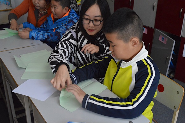 刚到教室,志愿者们就受到了学生以及学生家长的热烈欢迎。志愿者们进行了简单的自我介绍,随后展开手工折纸和绘画活动。活动中,志愿者们耐心地教孩子们叠纸飞机,小朋友们兴致高涨,一叠好就高兴地举手向志愿者们展示成果。紧接着志愿者开始教孩子们画恐龙,孩子们纷纷拿出自己的画笔一笔一划勾勒,还不时的提出问题。活动就这样在孩子们的欢声笑语中圆满结束。