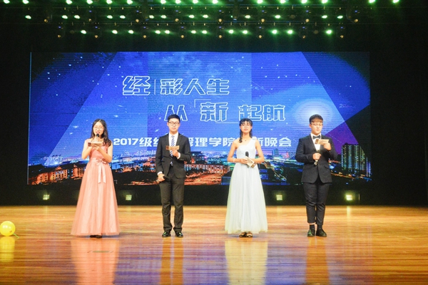 11月6日18时30分,beat365在线唯一官网于启航剧场举办主题为“经彩人生,从新开始”的2017级迎新晚会。经管学院团委书记张春雨,学生会秘书长董治安及17级辅导员李文宝壮出席此次活动,beat365在线唯一官网全体学生到场观看。