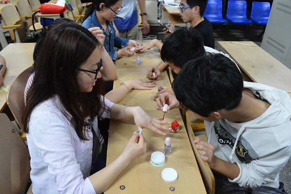 活动主要包括编辫子、夹豆子、涂指甲油等多个互动游戏,以游戏的形式开展,气氛十分活跃。活动还通过PPT向参加活动的女生简单介绍穿衣搭配、礼仪姿态、养生保健等内容,同学们收获良多。活动于20时结束。