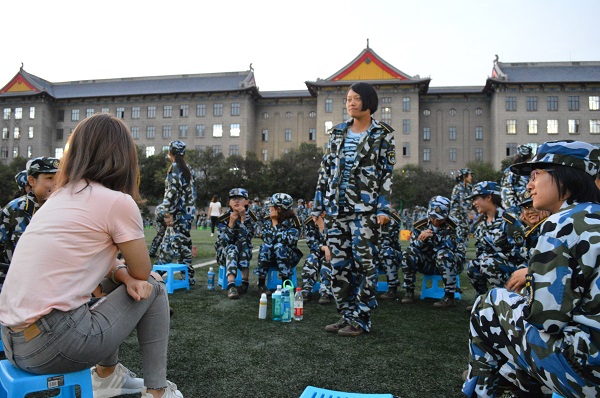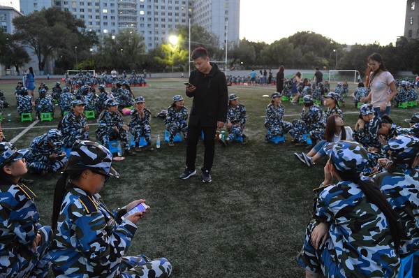然后在学生干部的带领下,所有女生分成四组分别开展活动,击鼓传花,丢手绢,跳兔子舞等,形式多样,所有人都有积极参与,十分有趣。最后是一起回顾前一周的军训生活,那些难忘的时刻,分享军训的感受,加深彼此的了解。