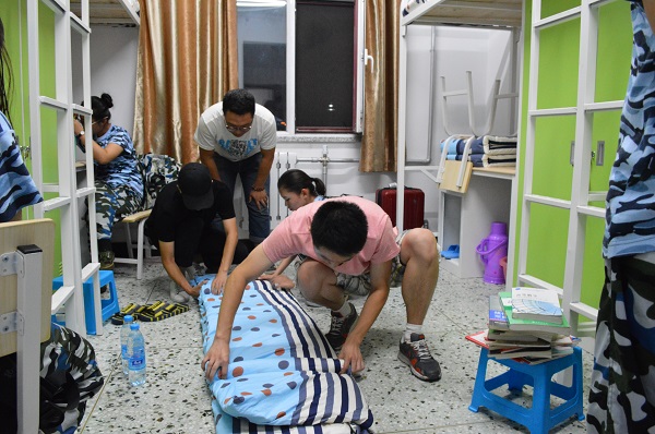 “出门看队伍,进门看内务”。8月23日18时,beat365在线唯一官网2016级全体新生在宿舍进行了内务整理训练,新生导航员在指导员刘敏的带领下来到宿舍协助所有新生整理内务。