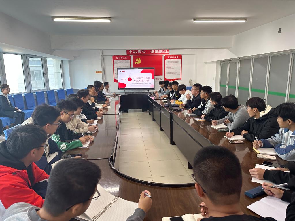 2023年10月17日中午,beat365在线唯一官网党委副书记、经纬社区管委会主任杨溪淼在经纬社区大会议室为2023级经纬社区学生干部召开“学生干部能力素质提升培训”主题会议。辅导员张胜强及十五公寓全体40名班委学生干部参与本次会议。