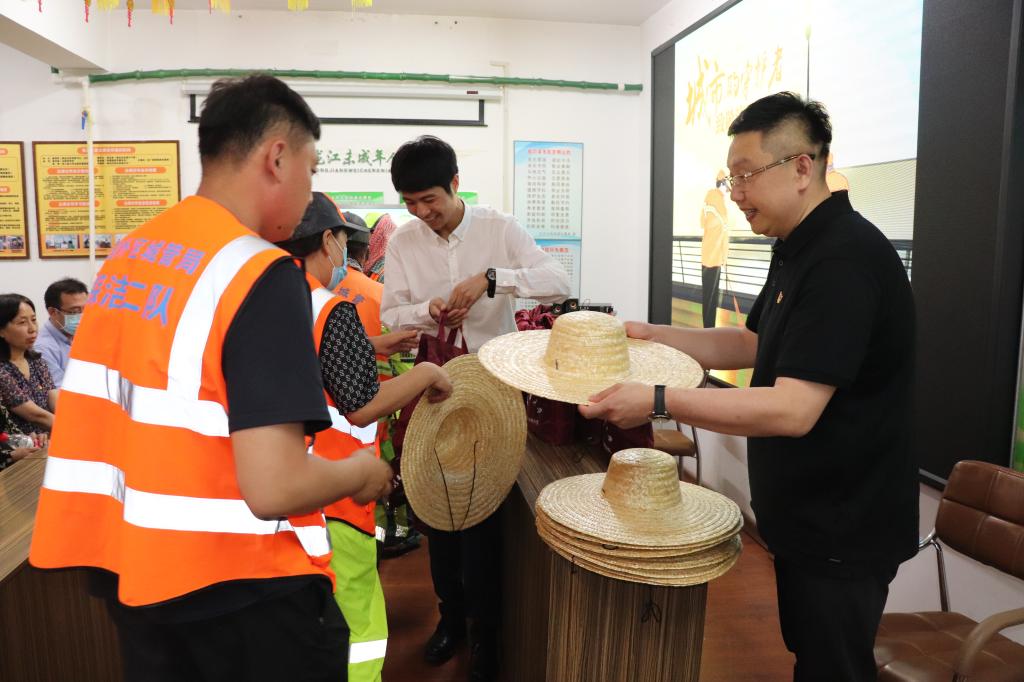 活动最后,学院党员教师将毛巾、香皂、花露水、牛奶、草帽等慰问品亲手送到了20名环卫工人们手中,并叮嘱他们注意防暑降温、注意身体,环卫工人拿着“暖心”礼包和“清凉”草帽,激动高兴地说:“虽然平时早出晚归很辛苦,但是你们对我们的关心、理解和支持让我们觉得辛苦也值得,我们今后也会继续用微薄之力营造干净优美的城市环境。”