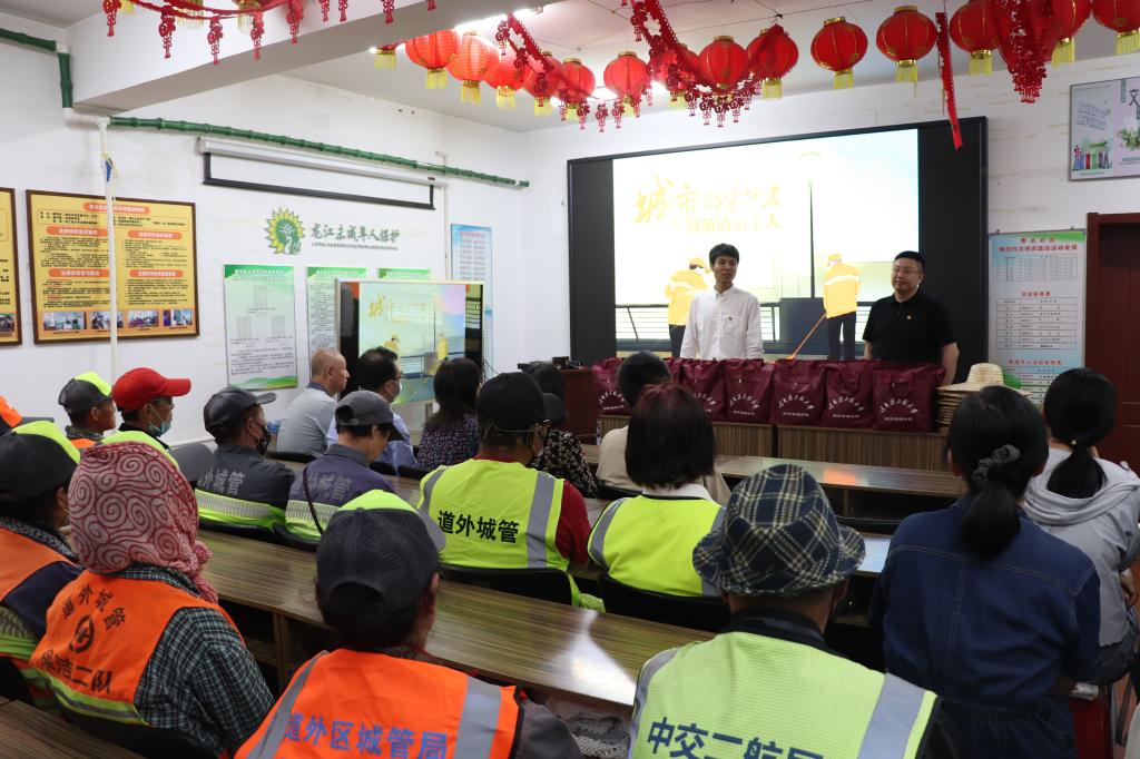 学院党委书记苏屹、党委副书记杨溪淼、党员教师代表一行20余人赴泰达社区,同环卫工人们一起清理辖区卫生,随后,各位党员教师与环卫工人们亲切交流,送出美好祝愿。苏屹书记表示,夏战酷暑,冬战严寒,环卫工人是我们身边生活最辛苦却又最默默无闻的一群人,他们是凌晨5点的城市“橘”光,一群穿梭在大街小巷的城市美容师,对各位环卫工人表示了诚挚的问候和衷心的感谢,并提出后续学院将与社区积极开展联合共建活动,从学院学科特点为社区提供服务,将校社联动常态化,为广大居民、社区劳动者办好事、做实事。
